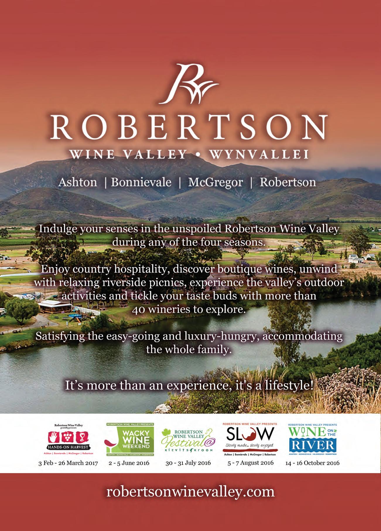 WHERE: Robertson Wine Valley ENTRY: Free – R650 dependent on the event you choose