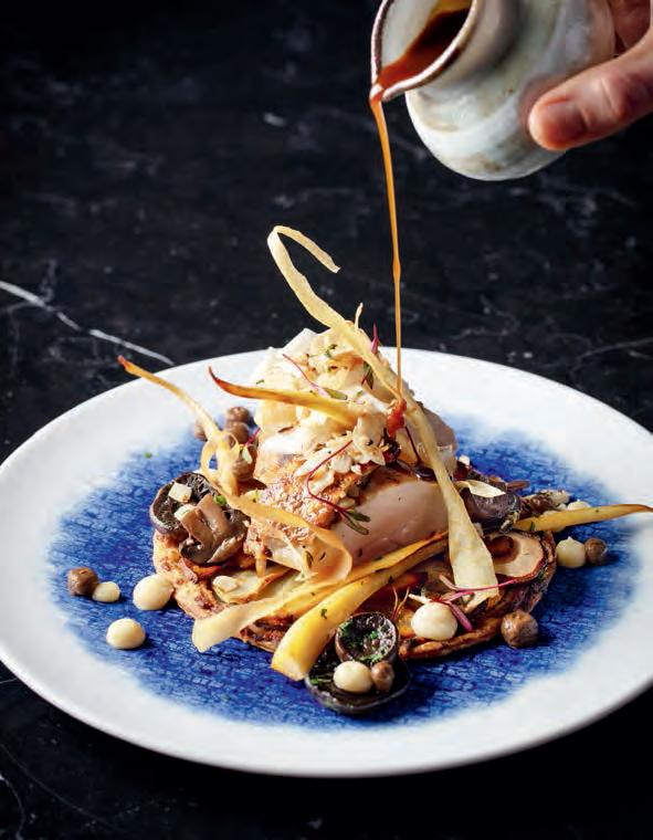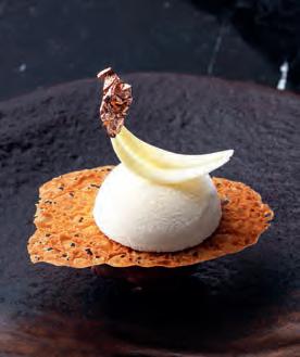 of the menu, rather than mere sides. Some of his most interesting dishes include Japanese chestnut with stout, blackcurrant and coconut; watermelon with soursop, rambutan and rose; and a whole baked onion hollowed and filled with onion puree and confit egg, sea salt, chives and black tru es.