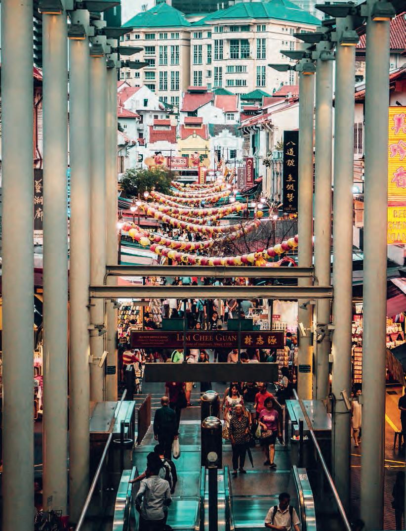 an experience in itself. One of my favourite spots in the city is Chinatown. Here, you’ll find the street market, one of the busiest and most popular places to shop and eat. Also known as Chinatown Food Street, the area is perfect for trying a vast array of local flavours — classics include the Singapore fried carrot cake, which is made from eggs and preserved radish; Hong Kong and Shanghai-inspired dim sum; and laksa, a dish made of vermicelli noodles, coconut milk, bean curd, fish and shrimps.