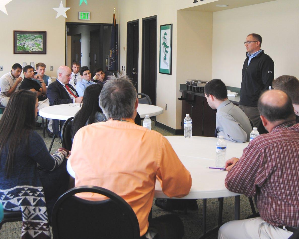 High school senior proposes his solution to place solar panels on the roof of Hennecke’s headquarters.
