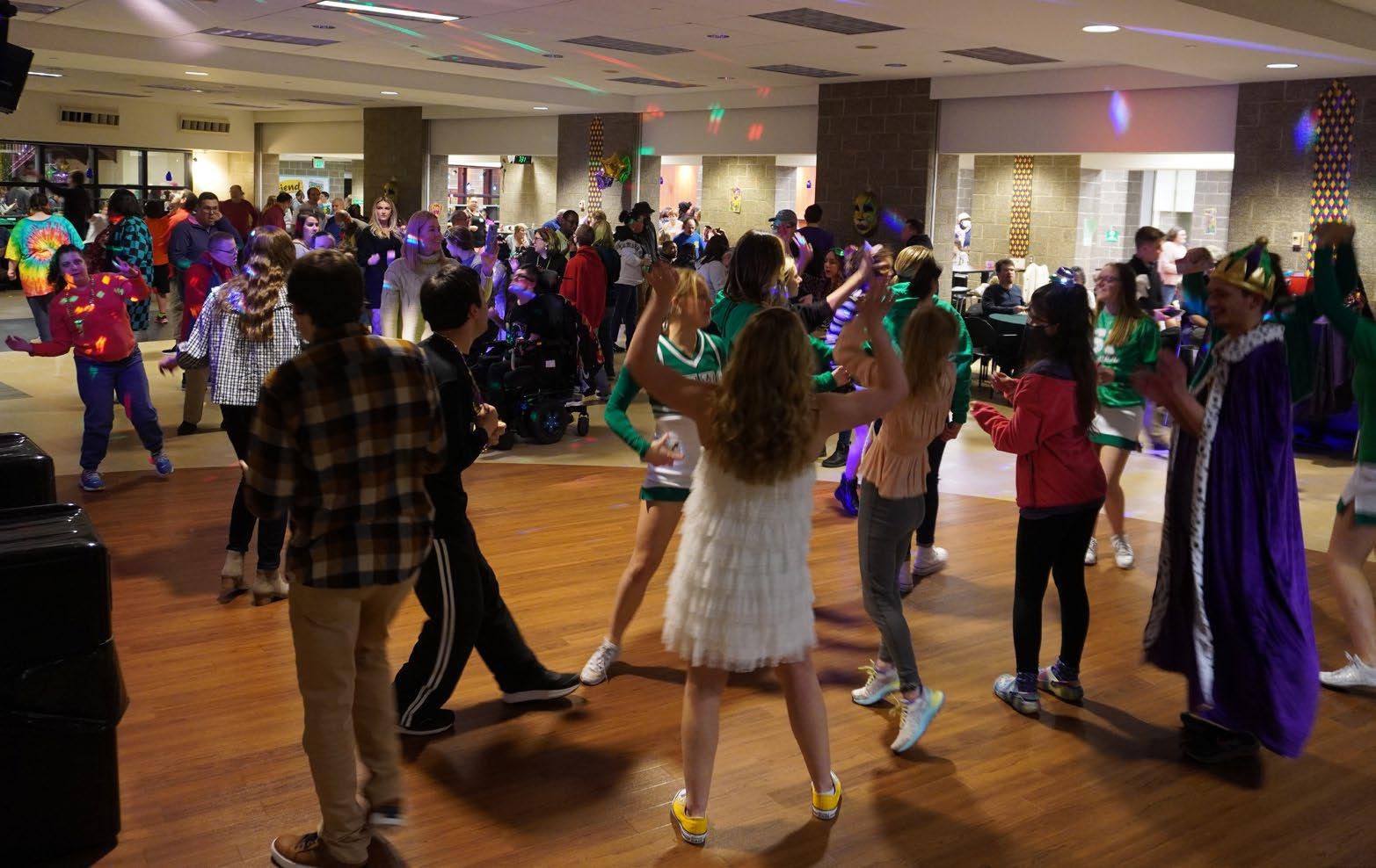 It was a record turnout for the annual South Fayette High School Best Buddies Club Mardi Gras Dance on Friday, February 17. Approximately 250 current and former students, family members, support staff, and friends danced, played games, and enjoyed great food. This dance has been a tradition at South Fayette High School for the past 15 years and was started by Helen Cardillo, former paraeducator and sponsor of the club Circle of Friends, to celebrate friendship and inclusivity.