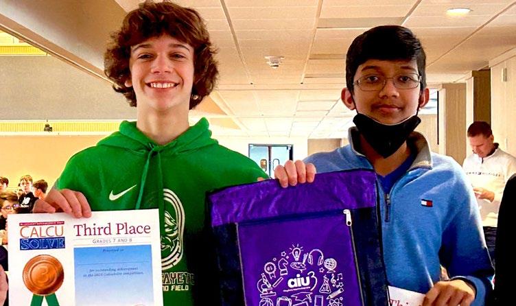 The South Fayette Middle School MATHCOUNTS team recently took third place in an Allegheny County competition. Additionally, middle school student Shaurya placed fifth, and Erick placed first. Erick is moving on to the state competition.