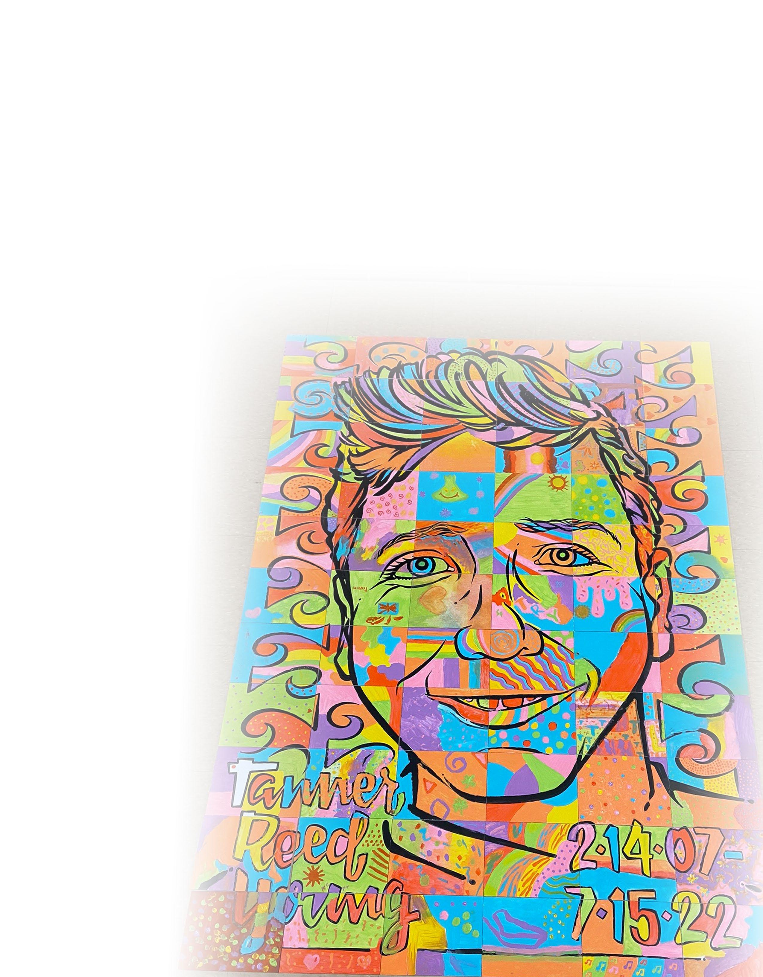 Once each tile was complete, the entire mural was assembled and truly represented Tanner’s happy, bright, carefree, and loving personality. The portrait will be displayed in the intermediate school.