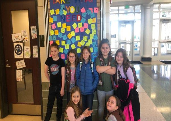 In addition, the troop created kindness posters, an interactive bulletin board, and kindness bracelets. Thank you, Troop 52346, for your efforts and your kindness!