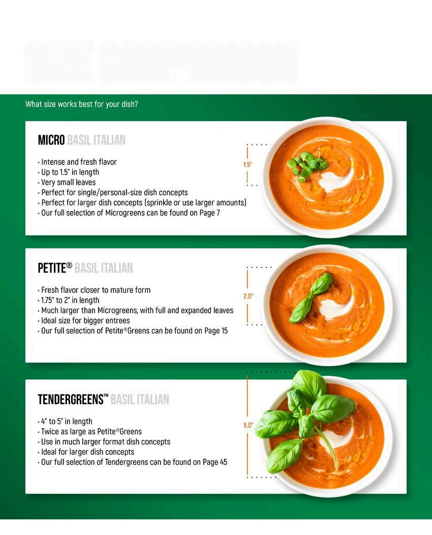 Harvested at the optimum moment for intense color, flavor, visual appeal and shelf-life. Microgreens add a layer of distinct flavors and beauty that can elevate platings and enhance depth of flavor to any dish We invite you to experiment with these items on your menu today!