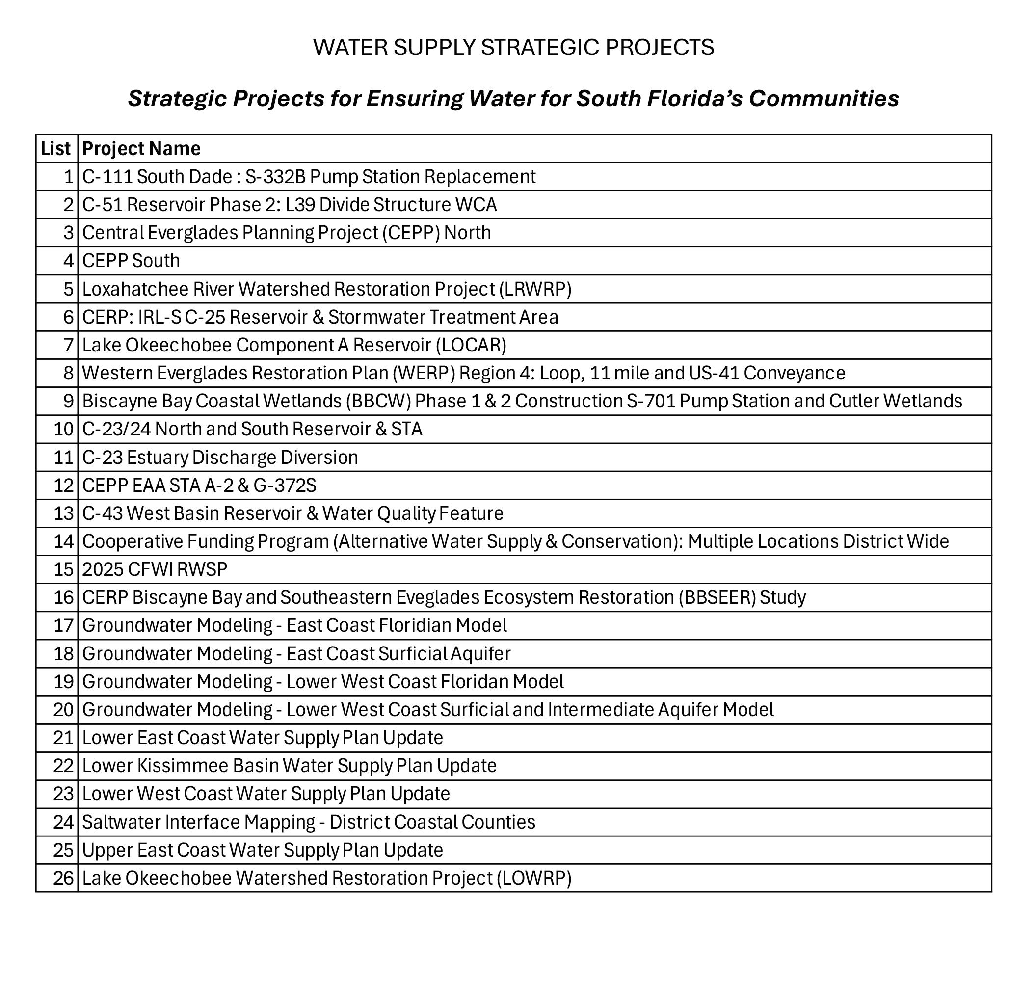 Strategic Projects for Ensuring Water for South Florida’s Communities