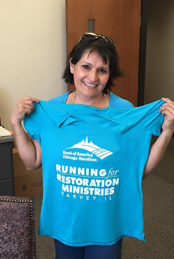 When she says “running a race,” she’s not talking about a little jog around the neighborhood or even a 5K or 10K. Since running her first race just a decade ago, she has participated in more than 100 halfmarathons, 19 marathons, and three 50K ultra-marathons. Ten of those marathons were the Chicago Marathon, including a virtual one done during the pandemic. For most of these races, she has raised money for Restoration Ministries.