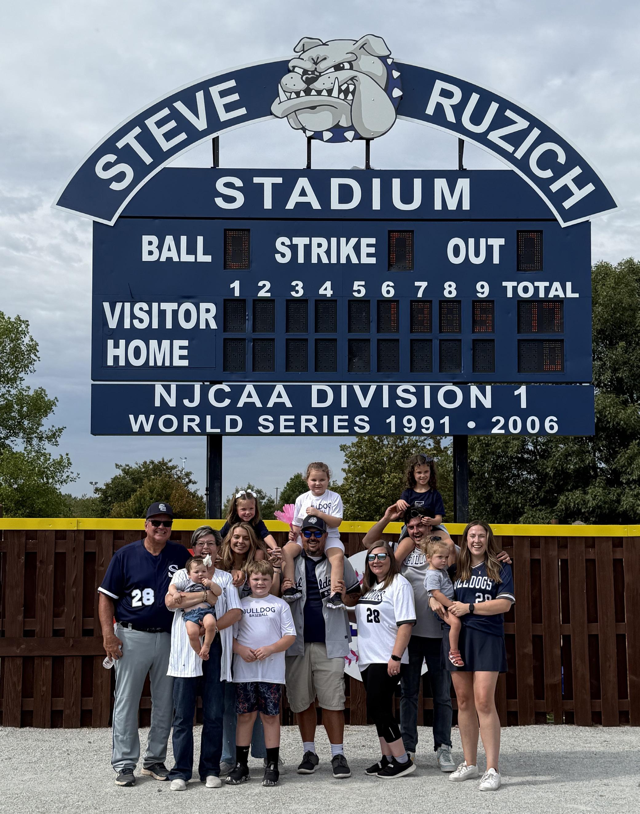 As for having a stadium named in his honor, Ruzich reflects humbly: “I never got into this thinking about individual accolades. This means so much because it’s always been about family here at the college. I went to school here, I played here, my kids went to school here. It’s an honor to have something named after you. I’ve spent many, many years out there on that field, and to see your name up there, it means a lot.”