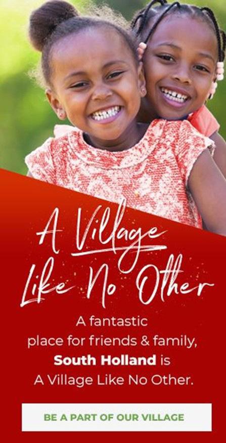 in 2020, we launched the Village Like No Other campaign, which was developed for the purpose of attracting young families to South Holland. This was a multi-faceted campaign, consisting of videos, online ads, and billboards. The Village Like No Other tagline appropriately identifies South Holland as a model and distinctive community in the south suburbs.
