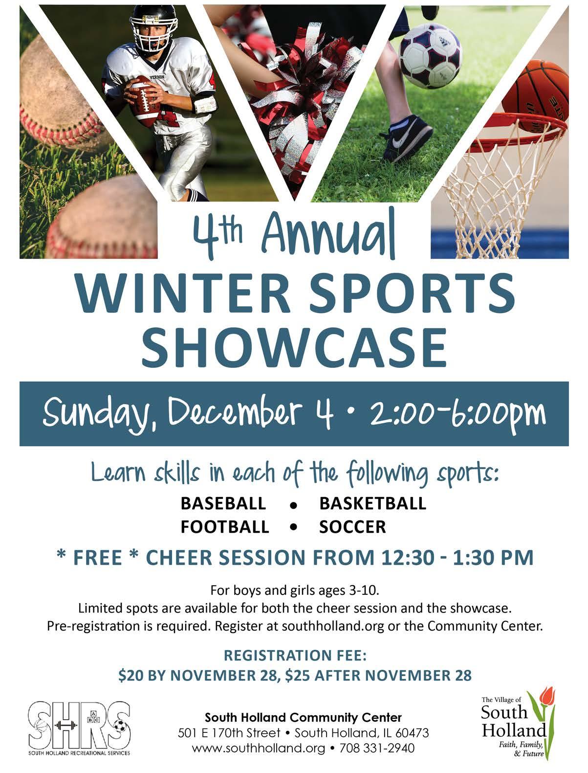 The Winter Sports Showcase was started in 2019 as a means of introducing South Holland’s youth to the value of team sports. At this one-day event, kids ages 3-10 are instructed on the fundamentals of baseball, softball, football, basketball, cheerleading and soccer.