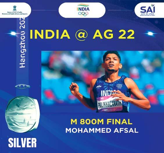 Hangzhou: Mohammad Afsal Pulikkalakath of India won a silver medal for India in the men's 800m at the Asian Games here on Tuesday, clocking 1:4843 to finish second behind Saudi Arabia's Essa Ali S. Kzwani. Afsal had twice finished seventh in the Asian Championships -- in 2019 and 2023. But on Tuesday, he could not be denied as the experienced runner from Kerala finally