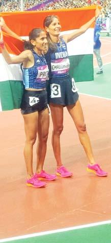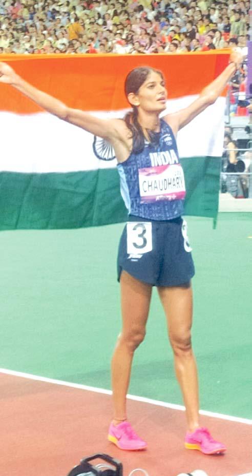 Chaudhary and Priti Lamba clocked personal best timing to claim silver and bronze medal, respectively, for India in the women's 3000m steeplechase at the 19th Asian Games, here on Monday. A day after Avinash Sable romped to victory in the men's event. Parul and Priti ran superb tactical races to finish behind Bahrain's Olympic and World leader Winfred Mutile Yavi, who set an Asian Games Record of 9:18.28. Parul clocked 9:27.63 while Priti finished third in 9:43.32, also her personal best'. It is a great performance by Parul , who stayed on the heels of the Bahraini before opened up a big gap with three laps to go. She continued and went to break her personal best, for the third time in a month after doing it twice at the World Championships.
