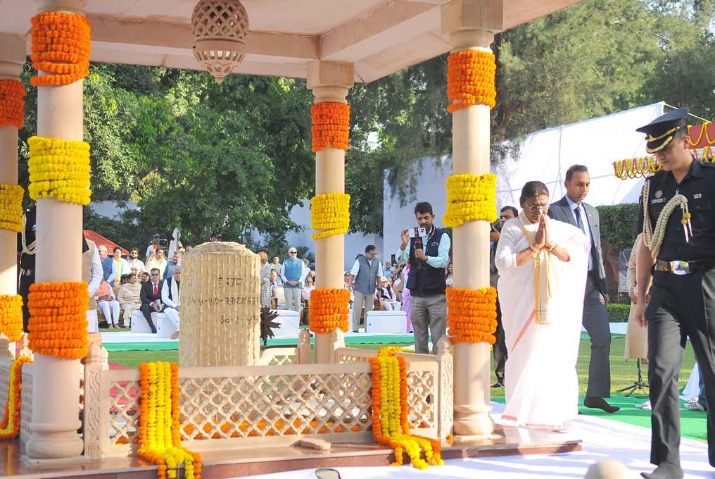 birla paying homage to Mahatma Gandhi on the occasion of Gandhi Jayanti at Parliament House, in new Delhi