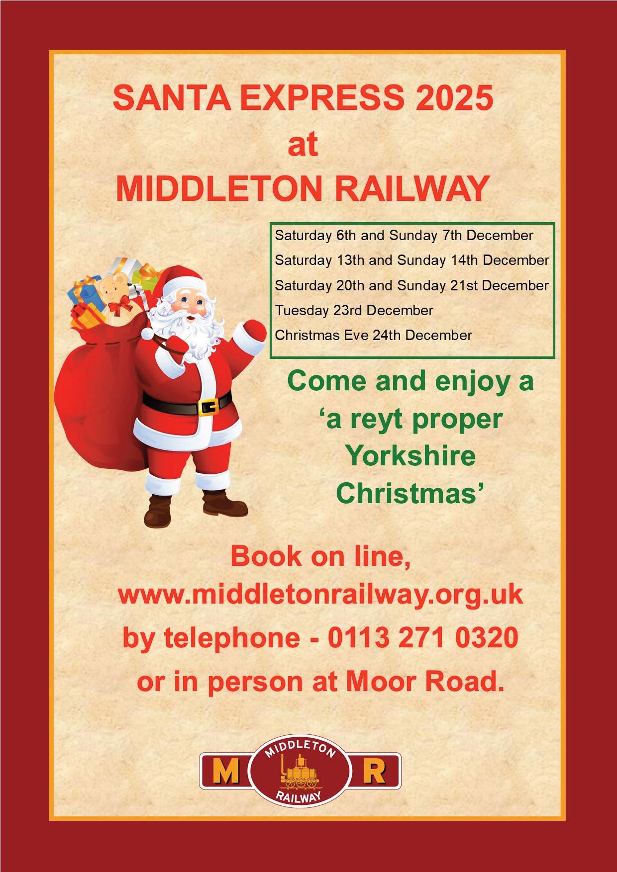 Bookings are open, and selling fast, for the ever popular Santa Specials at Middleton Railway.