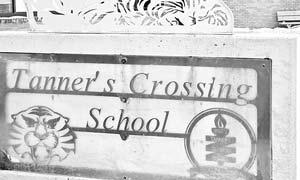 The sign outside Tanner’s Crossing Schoolin Minnedosa