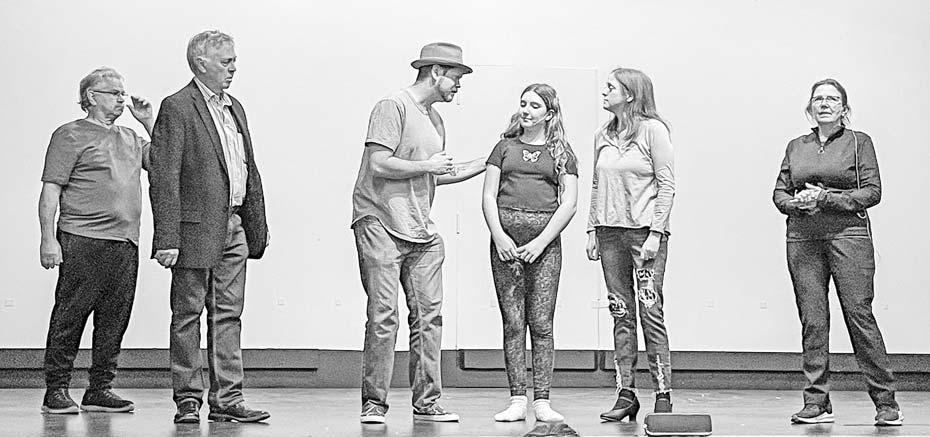 Joe Lisa,Jim Comrie,Eric Menzies,Georgia Richards,Amber Menzies,and Wanda Nicol,from left,run scenes during rehearsals for the Strathclair Drama Club’s production ofAnnie