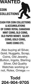 Minimum 25 words $7.00, additional words 25¢ (plus GST) Extra weeks are one-half original cost • Not responsible for errors in handwritten submissions Special rate for Obituaries, Cards of Thanks, In Memoriams