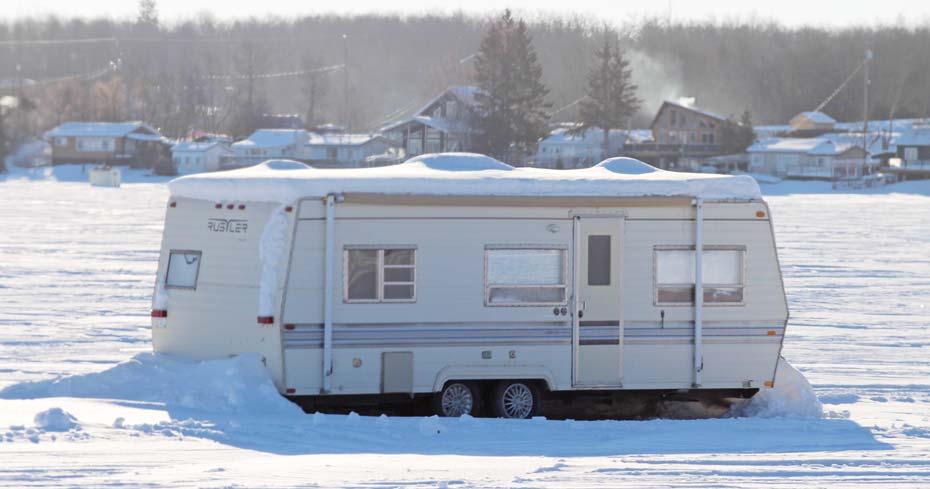 In this day and age, it’s often more odd to see an ice fishing enthusiast sitting out in the open air than something the size of a camping trailer being used as a fish house or hut. The individuals and/ or families who opt to use this trailer parked on the water basin known as Sandy Lake, are indeed fishing in comfort with splendid views of the shorelines and the lake itself. Manitoba’s cold winters are a gateway to unreal ice fishing opportunities, no matter the lake.