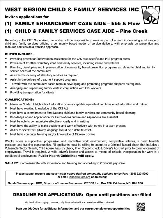 Please Submit Resumes and Signed Cover Letters before July 8, 2025, by 4:00 p.m. and addressed to: Warren Kirkness – Employment and Training Coordinator
