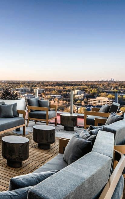 Nestled in the heart of the neighborhood, The Ballantyne has been a local landmark and bastion of Southern hospitality since 2001. This full-service resort is part of Marriott’s Luxury Collection and is recognized with AAA Four-Diamond status. Throughout the hotel, design choices blend historic charm with modern elegance — from bronze dalmatian statues in the lobby that pay homage to the property’s past as a hunting estate to gold-trimmed accents, a nod to North Carolina’s gold rush.