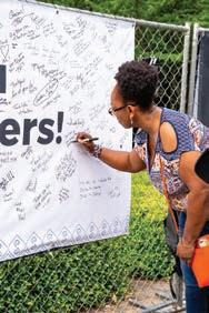 The white space filled quickly, as concertgoers grabbed a Sharpie and took turns during SouthPark After Five’s last concert in May. A week prior, the concert was canceled as an apartment building under construction a few blocks away smoldered.