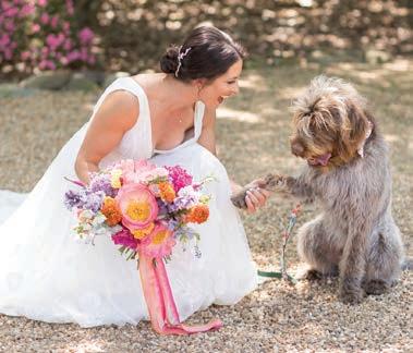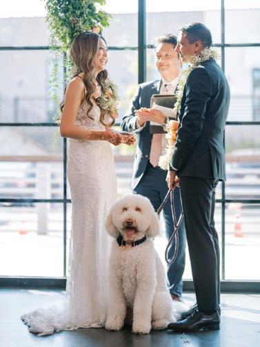 “It was not stressful,” says Melissa, who had dog Scooter by her side as she came down the aisle (he squeezed between the couple for the ceremony). “Only do what you and your partner believe in.”
