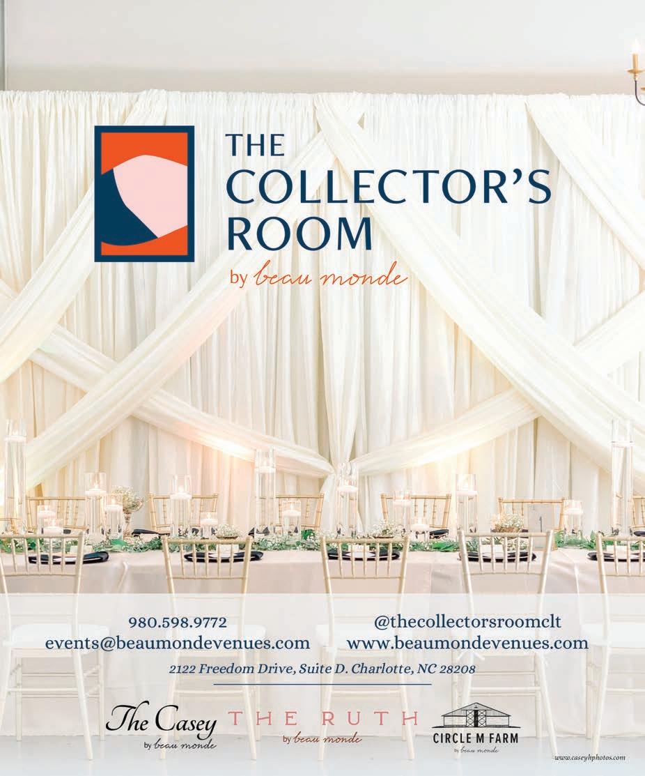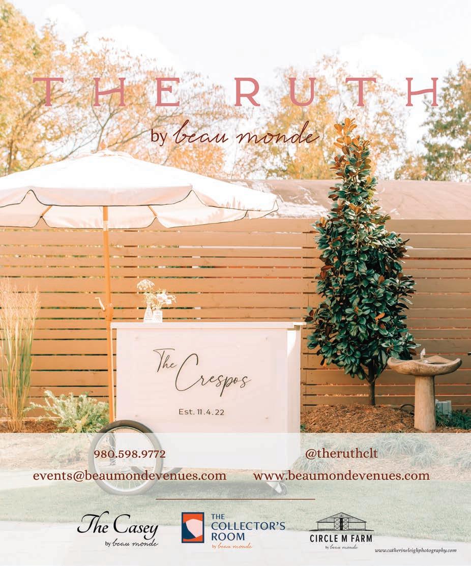 southparkmagazine.com | 151 TheVillageatSouthPark~SharonRoad 704.366.4523 ~ www.PaulSimonCo.com Charlotte’s Formal Wear Head quarters Heritage Gold ~ Samuelsohn Corneliani ~ Jack Victor ~ Paul Betenly Rentals by Jim’s Formal Wear 2104-PS Formal SP MagAd.indd 2 1/12/21 11:06 AM C H A R LOT TE QCSWEETSCHARLOTTE.COM Impress your wedding guests with a treat for their eyes and taste buds. Specializing in clean and modern cake design in Charlotte, we pride ourselves in exceeding expectations while providing a seamless ordering process. Custom cake tasting boxes available. @qc.sweets