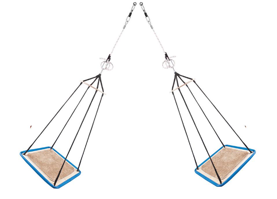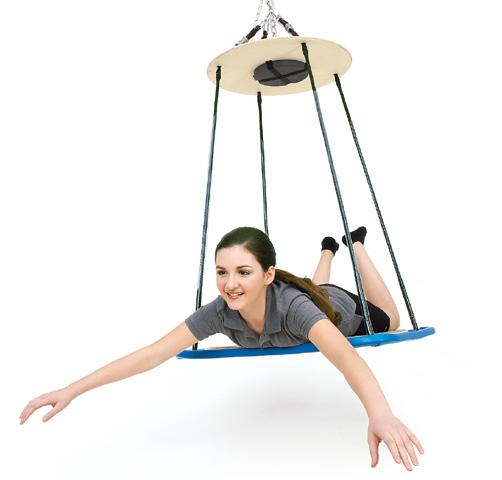 The versatility of a platform swing makes it an essential tool for every therapist. Clients can be sitting, prone, or in a standing position on the swing while engaging in their activities. And by unhooking one or more of the control lines at the top of the swing, the therapist can create a range of tilting movements to increase or decrease the challenge. The vinyl-covered platform and ropes make cleanup time simple, so your swing is always ready for the next client!