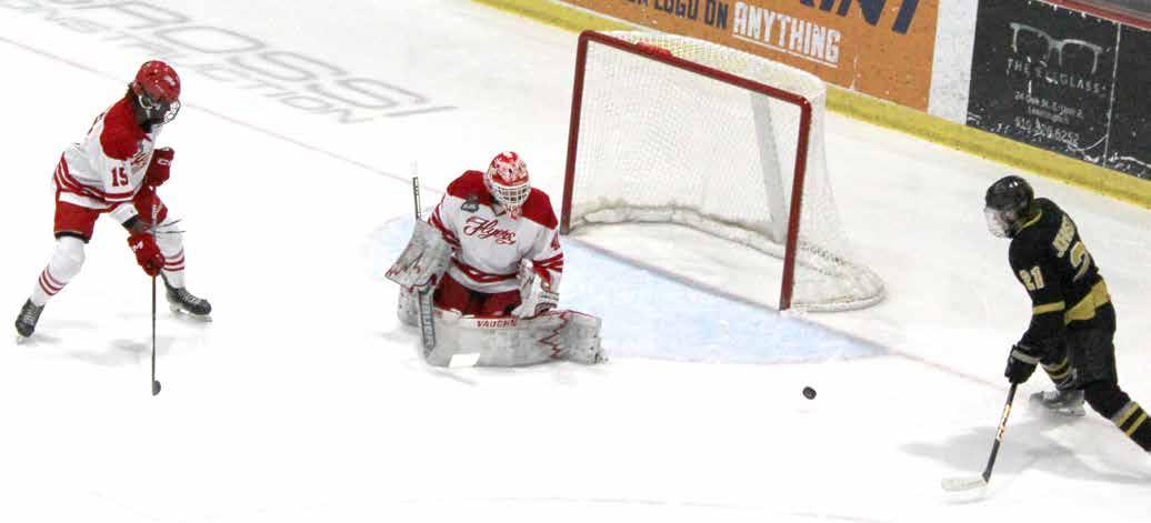 the penalty, Milton’s Luke Johnston whisked a Justin Dezoete pass into the Flyers’ net and it was 1-0.