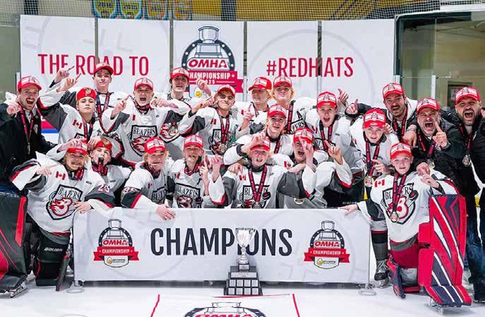 The Ontario Minor Hockey Association U15 champs, the Talbot Trail Blazers. Front row, from left, are Kevin Ondic, Brayden Foster, Lucas O’Neil, Nash Fuerth, Kelton McCabe, Connor Rumble, Braylon Aflak, Nicholas Chisholm. Back row: Zachary Dillen (Assistant Coach), Larry Jeffrey, Nathan Mariuz, Nolan Jones, Austin Goudie, AJ Youssef, Nicholas Magri, Maxim Pyne, Isaiah Georges, Charlie Ketler, Tyler Dillen (Trainer), Tony Youssef (Head Coach), Dylan Impens (Assistant Coach).