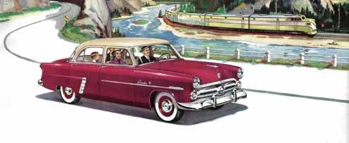 the rear license plate so you could pull up to the pumps on either side. All this plus a totally new dashboard created excitement in Ford showrooms all across Canada in February 1952. Cars worth waiting for!
