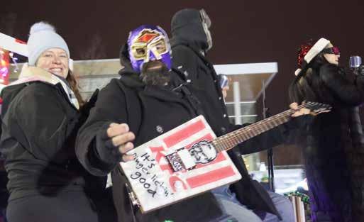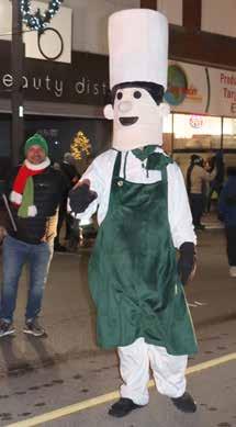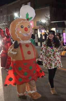 The cold night was highlighted by the sights and sounds of Christmas coming up the street but the predicted snow didn’t materialize until the final float — Santa’s float — arrived at the town hall.