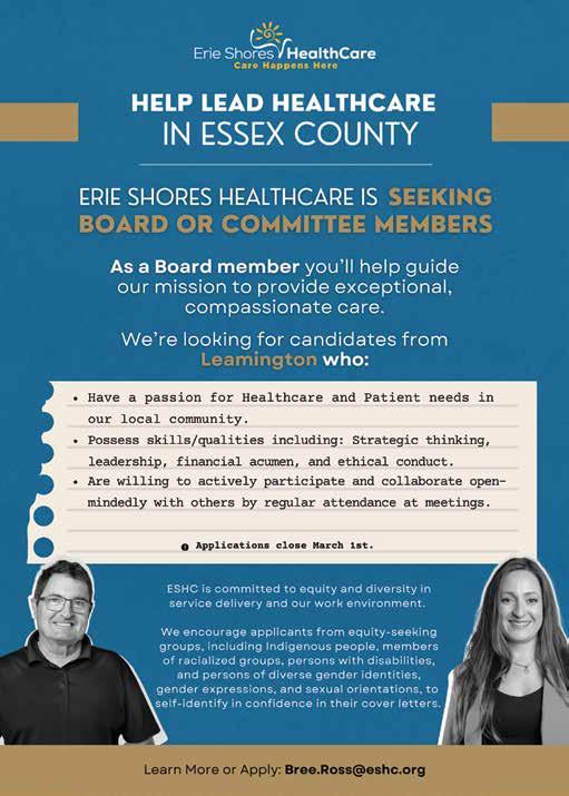 Hearts are by donation with no minimum. Virtual hearts can be purchased online at https://visufund.com/heartto-heart. Physical hearts for the heartto-heart wall displayed in the Leamington Medical Village building can be purchased in person at the Erie Shores Health Foundation office or by mail.