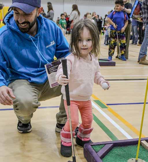 mini golf and games in the gym, a toddler area, snacks, raffles and more.