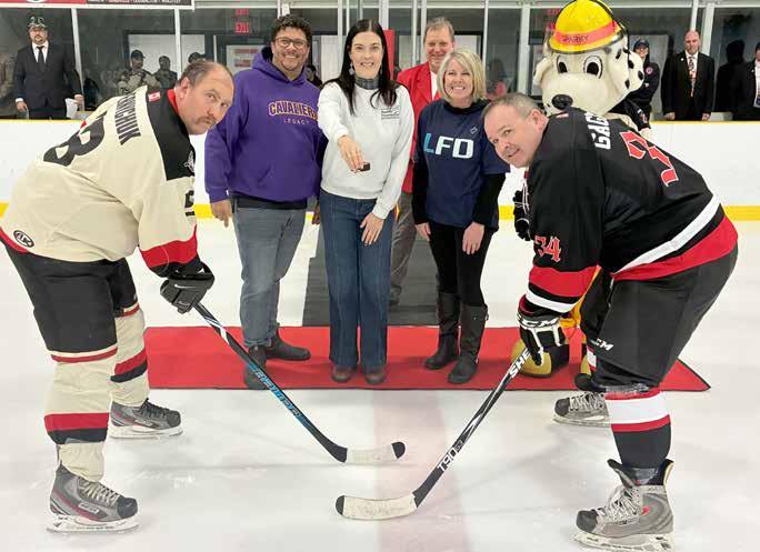 Forty-four firefighters from Kingsville and Lakeshore donned their jerseys and laced up their skates for a charity hockey game on Family Day at the Kingsville Arena.