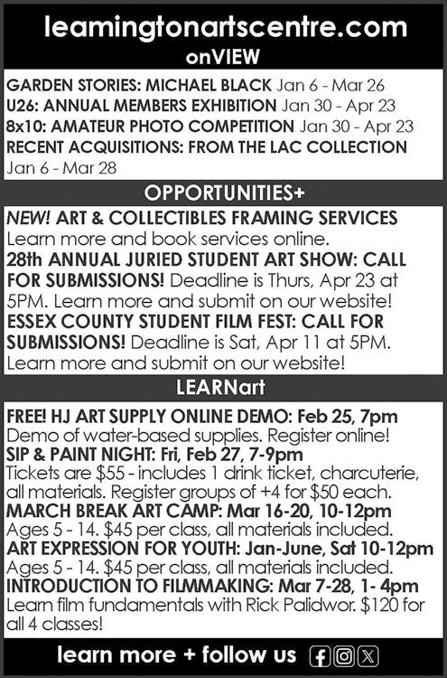 future members. Vendor tables are also available. To register or learn more, visit them online at leamingtonchamber.com or call 519-326-2721.