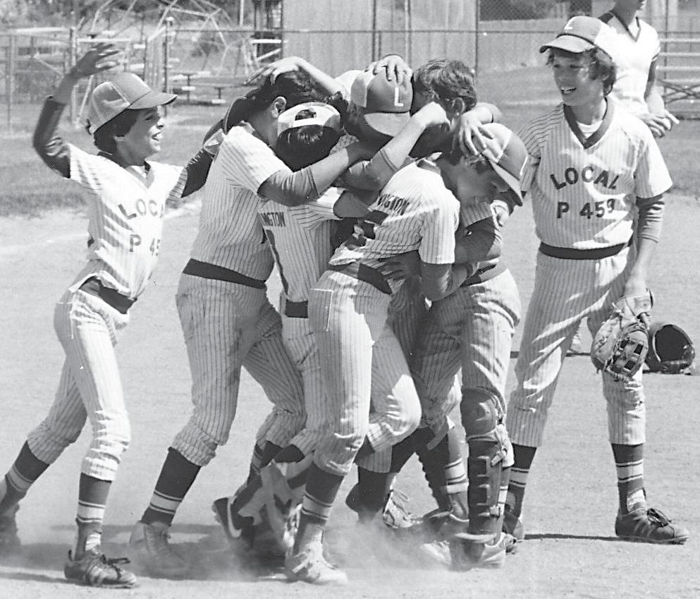The Leamington P-459 Tykes celebrate their 1982 Ontario championship.