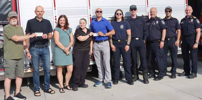 The Southern Footprints Race at Point Pelee National Park — held in April of this year — was able to help out three deserving organizations in the area. Crimestoppers received a cheque earlier this spring, while the Southwestern Ontario Gleaners and Leamington Firefighters Association were presented with cheques on Friday, June 20. From left are Southern Footprints organizer Dave Campbell, Gleaners Chair Greg Tiessen, Southern Footprints Marketing Director Jenn Johns, Southern Footprints Race Coordinator Denise Gaffan, Firefighters Harvey Steinhoff, Mahlia Rosati, Eric Wright, Scott McCallum, Jayden Tannous and Chief Don Willamson. SUN photo by Mark Ribble
