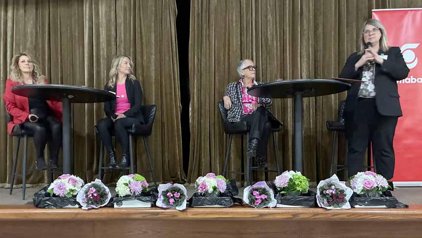 The day’s final session brought four community leaders to the stage for a fireside chat about not only emerging artificial intelligence, but also about their journeys as women in business. Moderated by SECC Executive Director Carolyn Warkentin, she asked the three women on stage to reflect upon their experiences with the day’s topic of artificial intelligence and its effects.