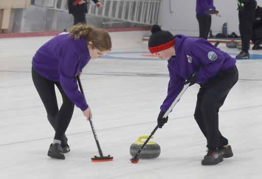 The Sun Parlour Curling Club hosted the SWOSSAA curling championship on Monday, March 9 with several teams from across the region qualifying for a berth in the tournament LDSS did not qualify for the finals in the one-day event, but played well. Erie Migration District School (EMDS) advanced two teams to the finals, with the boys (mixed) team facing off against Sarnia St. Patrick’s on one sheet, while the EMDS girls took on L’Essor in the girls final. The EMDS girls emerged victorious over L’Essor and were crowned SWOSSAA champions. The boys (mixed) team dropped their final matchup to St. Patrick’s. In the top photo, members of the EMDS girls team watch as their rock sails through the house. In the bottom photo, members of the boys (mixed) team sweep away at their rock against St. Patrick’s. SUN photos by Mark Ribble