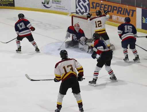 Before the puck dropped, LDSS student Delilah Hiede performed a beautiful rendition of the national anthem, setting the tone for what would be an exciting and competitive game. When the action began, the Lions wasted no time making their presence known. Ethan Barnwell scored the first goal of the game for LDSS, sending Lions fans into a loud celebration. However, CCSS responded shortly after with a goal of their own, keeping the game tight and competitive. As the game progressed, both teams continued to battle hard on the ice. Eventually the game became tied 2–2, with both teams hopeful they could secure the win.