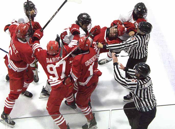 With both sides taking many penalties — most of which stemmed from flare ups where opposing players induced some five-finger exchanges — the game often had short bursts of talks between the refs and linesmen who tried to figure out which players got assessed time in the sin bin.
