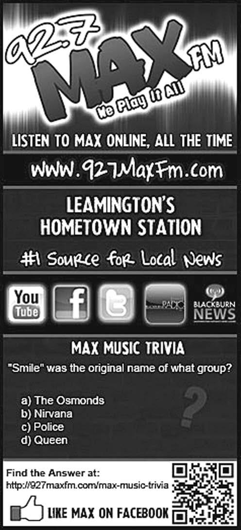T.O.P.S. - Take Off Pounds Sensibly. Weigh in from 6 pm - 6:45 pm, meeting from 6:45 pm - 7:30 pm every Monday at Wheatley United Church. Call Cheryl at 519825-9194 or Ellen at 519326-0730 or visit website: www.TOPS.org. Everyone welcome. tf