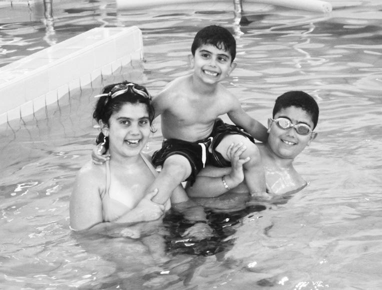 The Saba children Alexandra, Charbel and Richard enjoy a refreshing swim at the Complex pool.