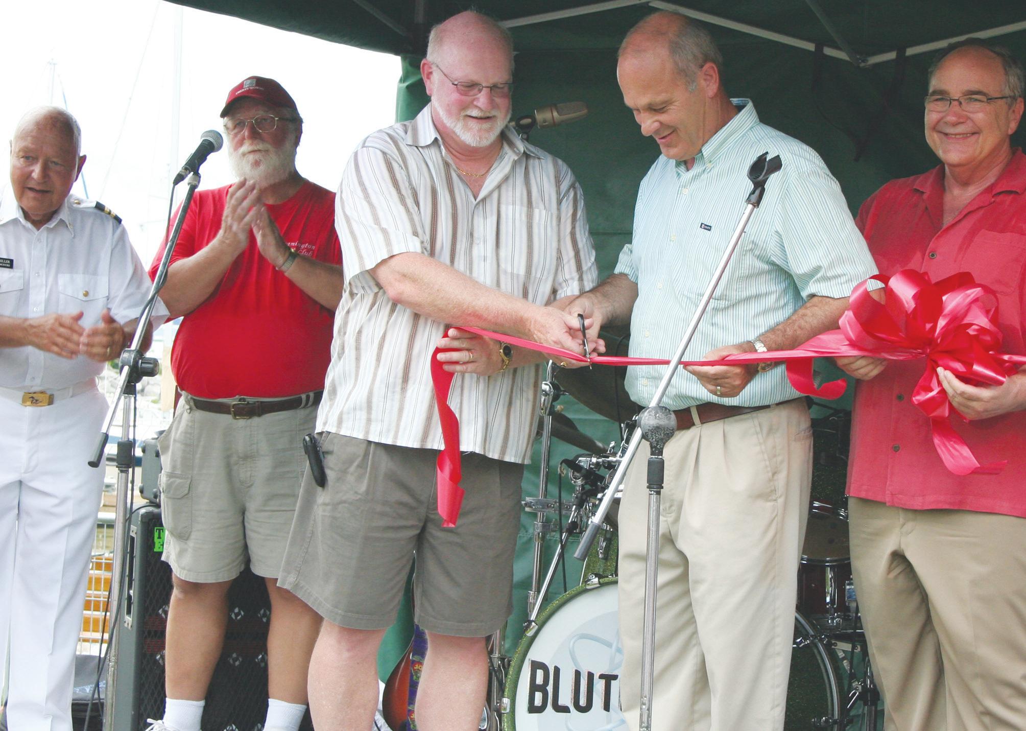 A large crowd gathered on Saturday, July 23 to witness a ribbon-cutting ceremony at the official grand reopening of Leamington Marina to celebrate the rebuilding of the marina, which suffered extensive damage in the tornado that devastated the area June 6, 2010. Joining in the celebration were people from Leamington and the surrounding area, boaters from Canada and the United States, and dignitaries MP Dave Van Kesteren, Mayor John Paterson, DeputyMayor Charlie Wright, Councillors Larry Verbeke, Hilda MacDonald, Chris Chopchik, John Jacobs and Rick Atkin, Jerry Brown, Commander of Leamington Yacht Club, and Rear Commodore Dave Miller of the Great Lakes Cruising Club.