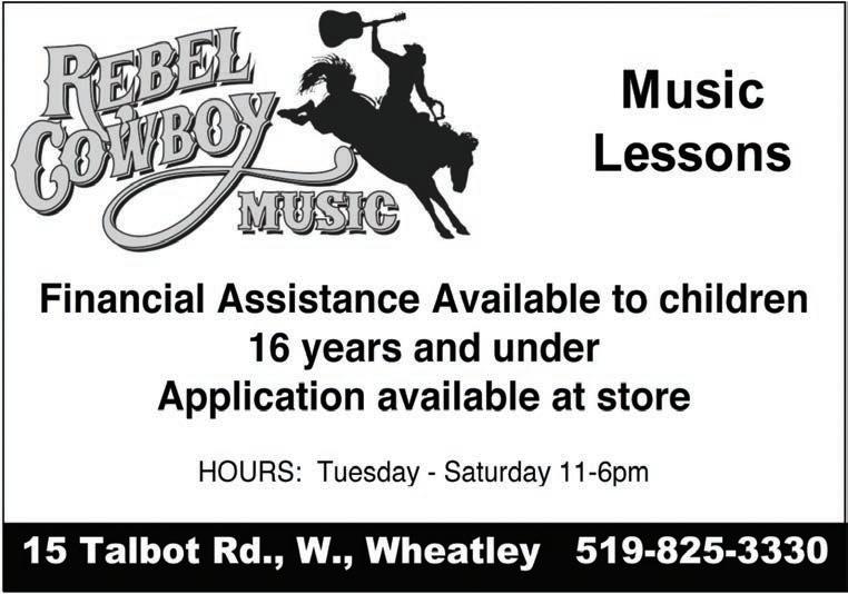 MUSIC LESSONS at Rebel Cowboy in Wheatley. Call 519-825-3330. jn8-tfc