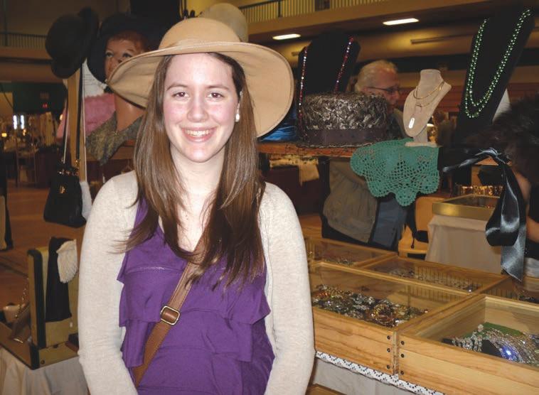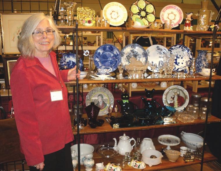 Karen Heaton, owner of Somerville Antiques from Hamilton, ON, shown with her display of Flow Blue China.