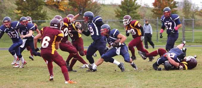 Of the Lions 30 players, only 12 had any previous football experience prior to the beginning of the 2012 season. Regardless, Leamington’s 5-1 record earned the team first place in the Arnott Division and a first round bye along with second-place St. Joseph. In the quarter-finals, third-place Riverside will host sixth-place Assumption while thirdplace Forster hosts fourth-place L’Essor. Leamington will play the lowest-ranking winner in the Arnott semis Thursday, Nov. 8 with home-field advantage.