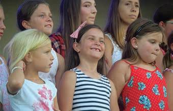 LEFT: Youngsters from the Music Moves Kids program led by Erin Armstrong performed the national anthem at the opening ceremonies of the Kingsville Folk Music Festival.