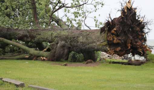 The damage in Kingsville’s Greenhill Cemetery included this tree, which was at least three feet in diameter.